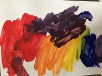 We painted rainbows just using red, yellow and blue paint.