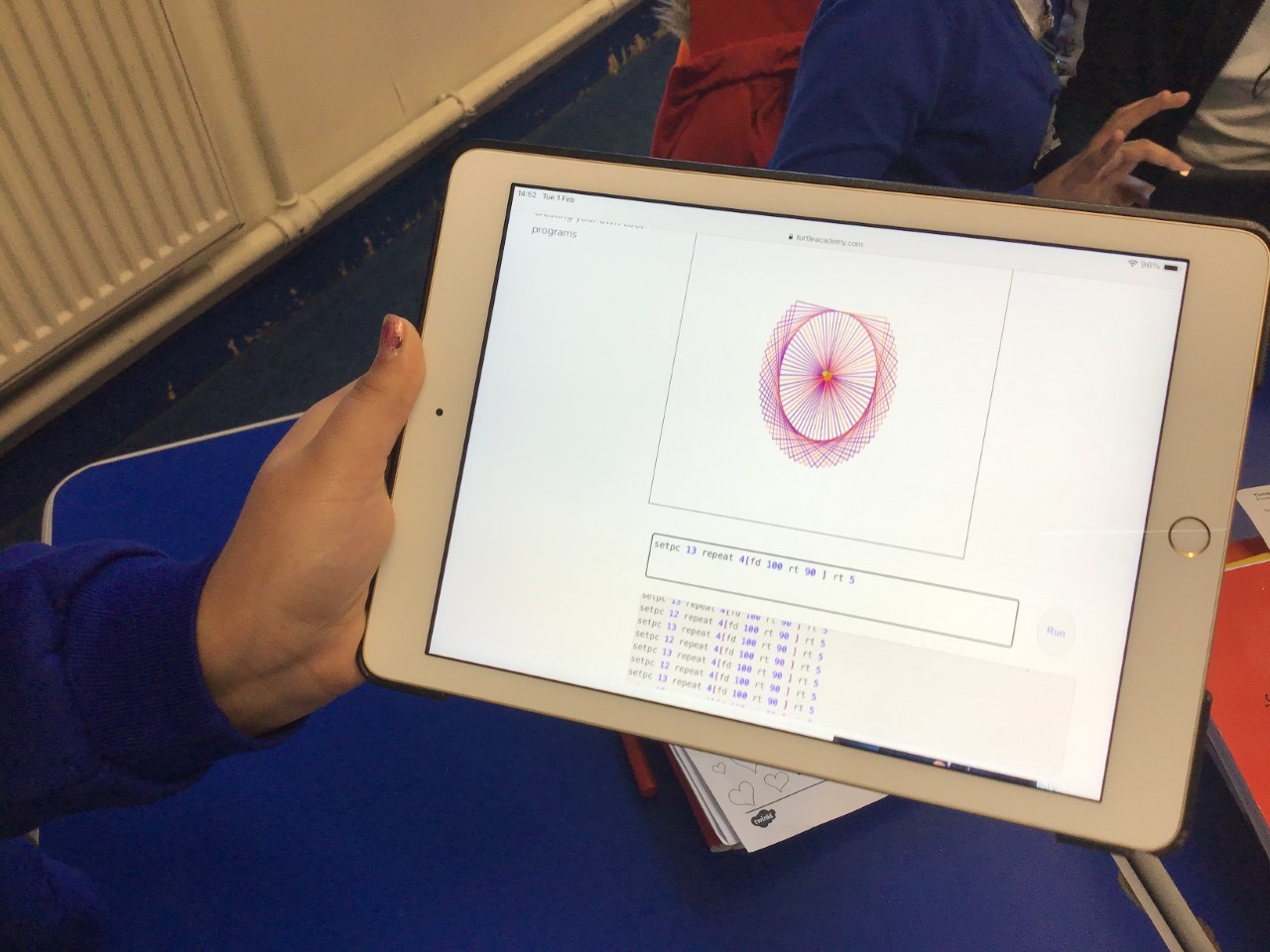 Year 4 have been practicing their coding skills this half term in computing. We have been looking at a program called Turtle Logo, which is a turtle that will follow codes we type in on the iPad / computers. The children today looked at how to change the colours of the pen to created repeated patterns. They turned out great!!